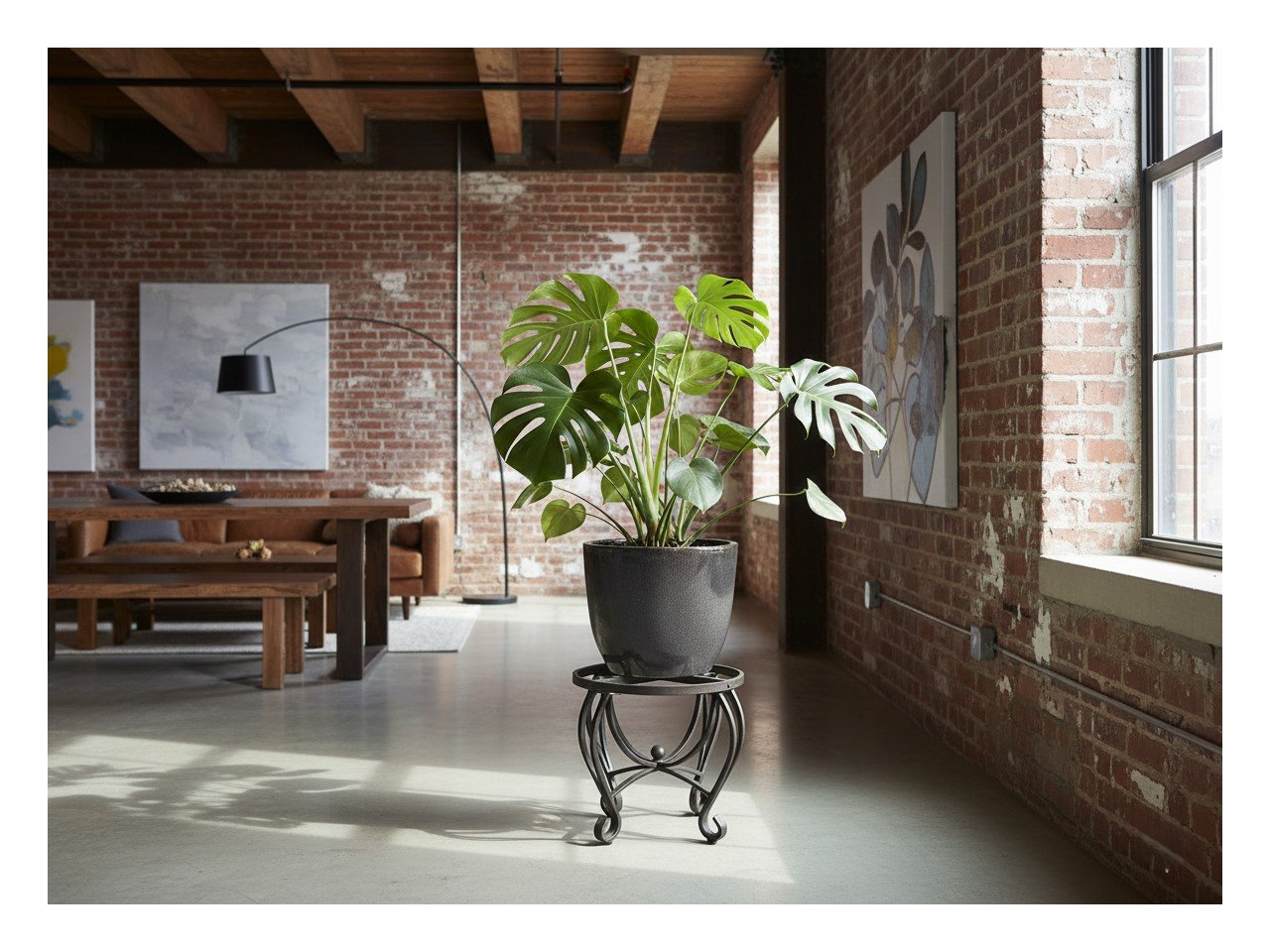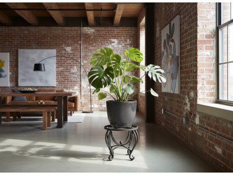 Całkowicie ręcznie kuty kwietnik stojący, doskonały do każdego domu, hotelu czy urokliwego pensjonatu.