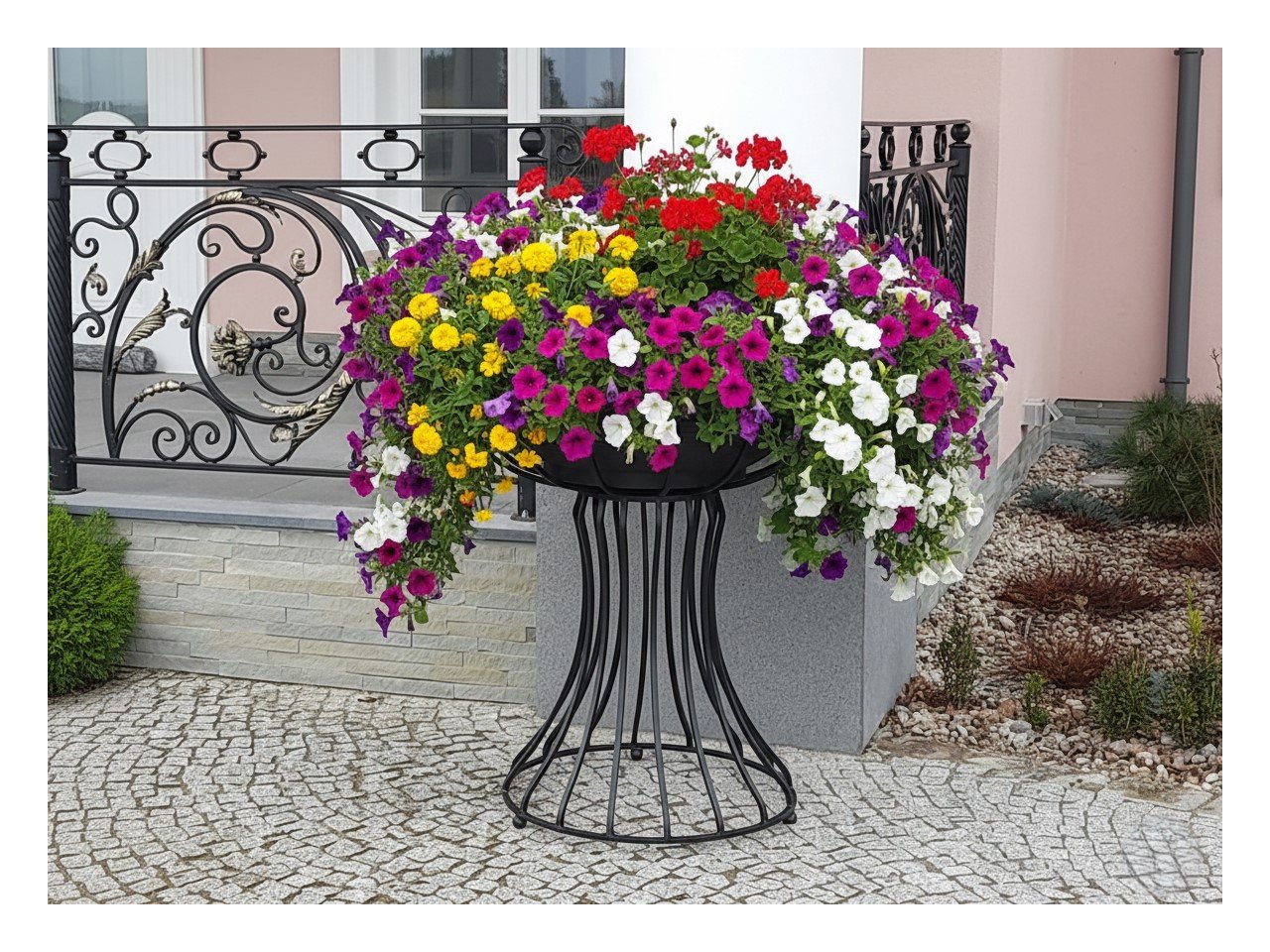 Ogrodowy kwietnik z kutego metalu w piękny, i zrównoważony sposób ukwieci każdą przestrzeń. Produkowane w polskiej kuźni, z najlepszej jakościowo stali, cynkowane ogniowo i malowane proszkowo na dowolny kolor z palety RAL. Kute kwietniki metalowe przetrwają nie jedno pokolenie. Jesteśmy w stanie zrealizować każdy projekt na kwietnik kuty z metalu.