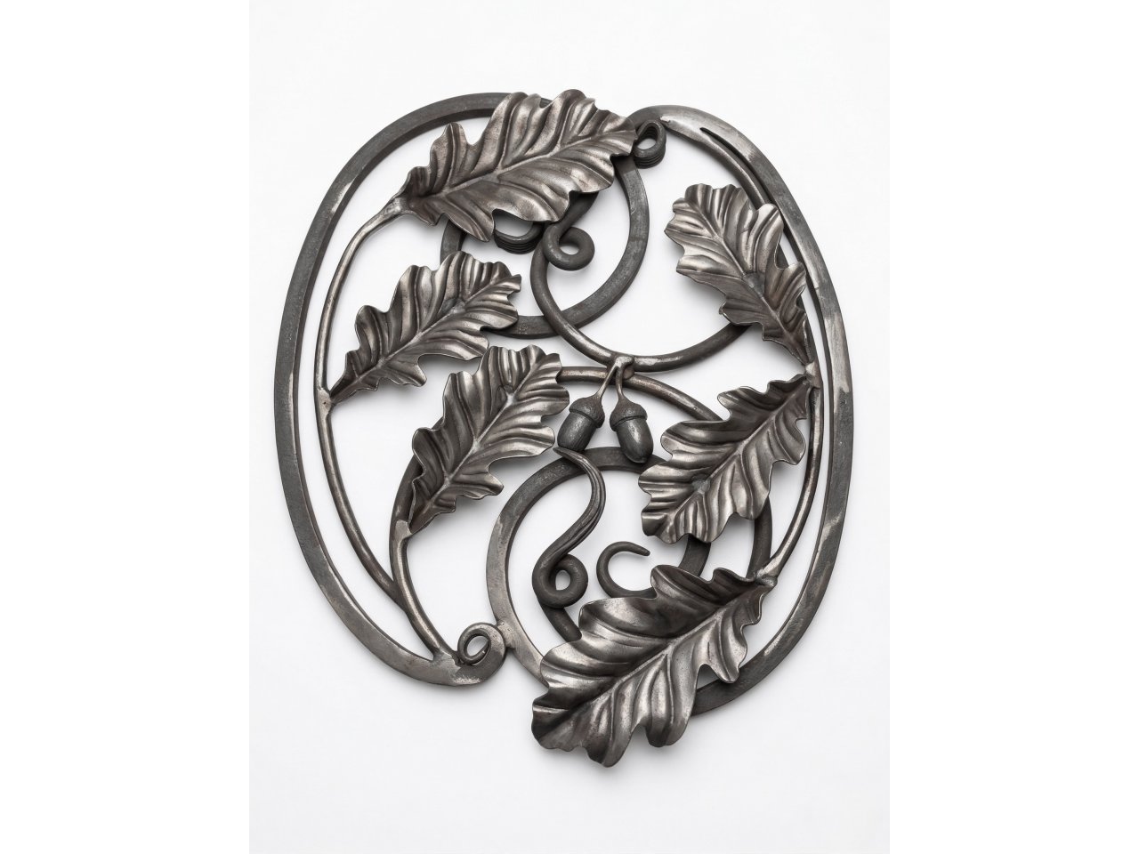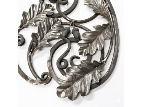 Metalowa rozeta kuta w formie dębu.