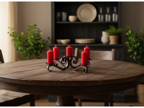 Całkowicie ręcznie kuty świecznik z pięcioma stopkami na świece upiększy każde wnętrze.