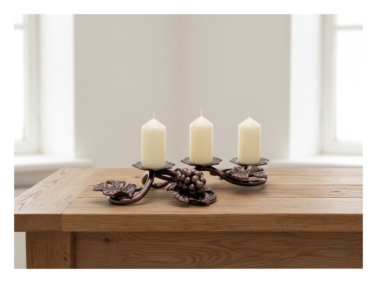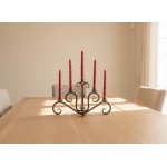 Całkowicie ręcznie kuty świecznik z trzema stopkami na świece upiększy każde wnętrze.